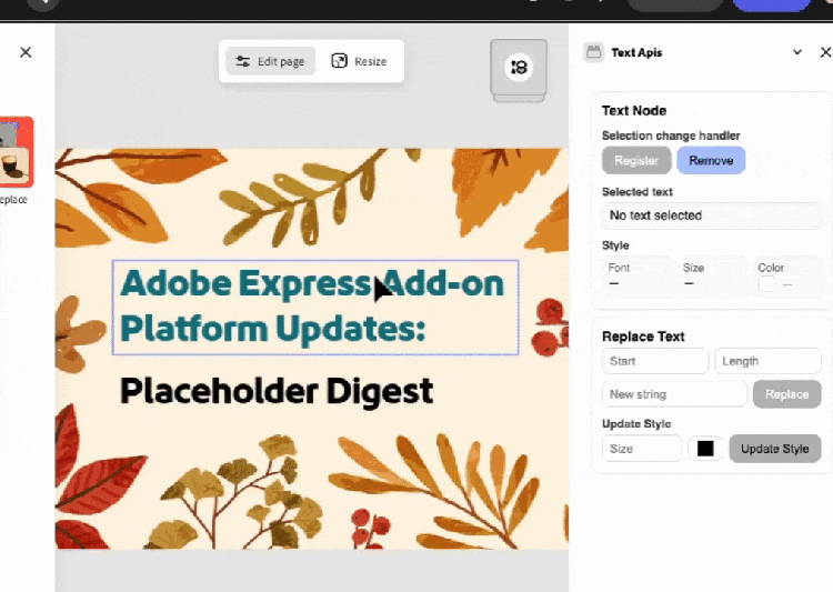 - Selection Change APIs – for triggering real-time updates to the add-on UI based on the user’s selection, such as font replacement or layout tweaks. See the Handle Element Selection guide.