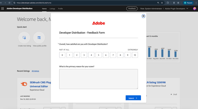 A new feedback form now appears after every submission of a listing, and you can also open it anytime from within Developer Distribution. Your responses are anonymous — please share your feedback so we can keep improving the experience.
